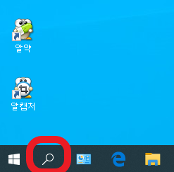 1. 바탕화면 하단에 돋보기(검색)이 있어야 합니다. 만약 없을시 간단히 돋보기 생성 방법 부터 설명하고 넘어가겠습니다.