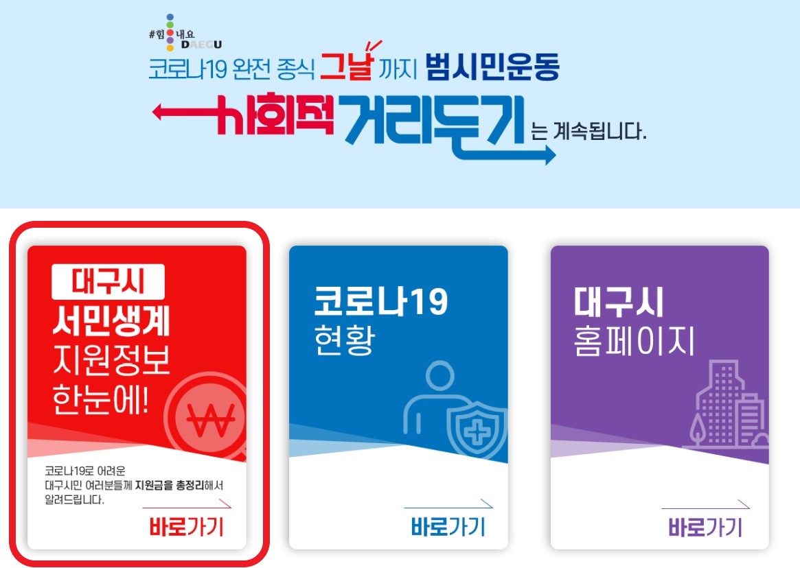 2. 지역 홈페이지에 들어가서 대구시 서민생계 지원정보 한눈에를 클릭해 줍니다.