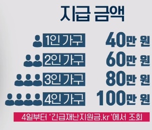 3. 저소득층 및 기초생활보호자와 장애인연금 수급자는 5월 4일부터 지급하며 거주 주민센터가 해당자에게 문자로 입금 안내를 한뒤 별도의 신청없이 계좌로 현금으로 지급합니다.