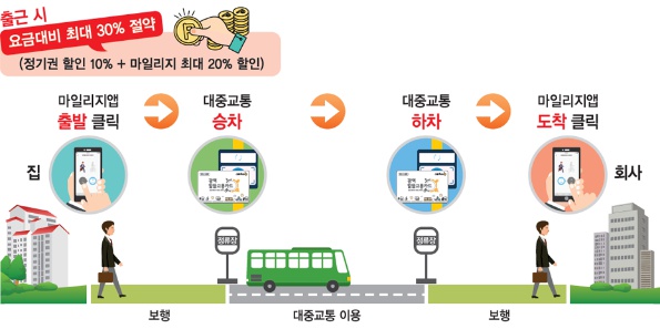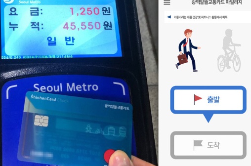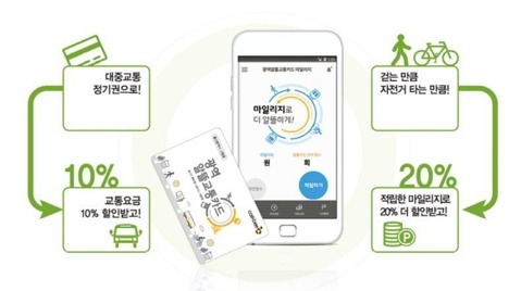 또한 매일 통학과 출근을 위해 대중교통을 이용하는 청소년과 직장인들 및 시민들에게 교통비 할인과 친환경 교통이용을 장려하기 위해 교통카드와 마일리지를 결합한 정책이라고 합니다.