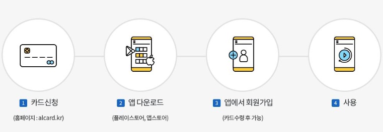 - 광역 알뜰교통카드 홈페이지 www.alcard.kr 에서 신청이 가능