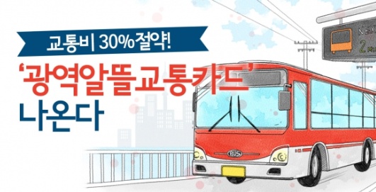 광역 알뜰교통카드란 광역 알뜰교통카드로 대중교통을 이용하면 교통요금을 10% 할인을 받을수 있으며 걷거나 자전거로 이동한 거리만큼 마일리지가 20% 적립되어 대충교통비를 최대 30% 까지 절감할수 있습니다.