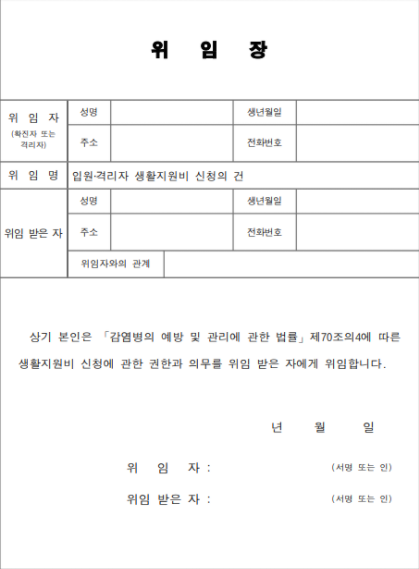 거주지 관할 주민센터로 방문하셔서 신청하시면 되는데 코로나 격리 지원금 신청을 본인이 할 경우 격리자 신분증이나 사본, 대리인 경우 위임장 제출 / 격리 통지서 또는 입원 치료통지서 / 신청인 명의 통장 사본 / 생활지원비 신청서가 필요합니다. 또한 배우자와 자녀가 다른 주소지라도 가족관계증명서가 있으면 지원대상이 됩니다. 신청 기한은 자가격리 해제일 이후 3개월 이내에 신청이 가능합니다.