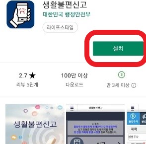 1. 우선은 스마트폰에서 플레이스토어를 들어 가셔서 생활불편신고를 검색해 다운을 받으시면 됩니다.